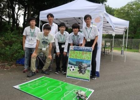 多くの親子連れが観戦に訪れる中、本校コーナーもロボットやサッカーに興味がある子供たちで賑わいました。