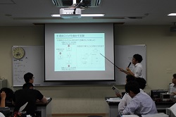 石飛准教授の講義が始まりました。瞬時等価回路を用いたダイオード回路と振動回路読解術の説明です。