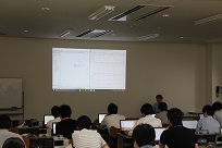 降圧チョッパ回路製作に先立ち、服部特命助教から概要説明がありました。受講生は回路図の検討をしています。