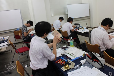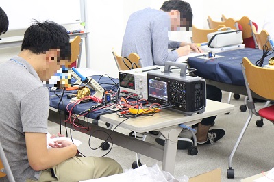 講義終了後、引き続き実習を行いました。受講生は制御回路より観測される波形をオシロスコープにて測定し