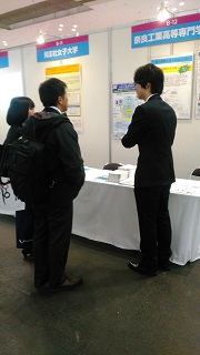 産学協働・地域創生研究センター 京都ビジネス交流フェア2017に電気工学科 平井 誠 准教授が出展しました(2017年3月16日掲載) 京都ビジネス交流フェア2017に出展しました! 平成29年3月1日(水)・3月2日(木)、「京都ビジネス交流フェア2017」(会場:京都パルスプラザ)において、本校と舞鶴工業高等専門学校が共同ブースで出展し、本校からは電気工学科 平井 誠 准教授がディスプレーしました。 <複合型半導体光電極による高効率な水素生成に向けた研究> <電池駆動の揺れ探知機センサで事業化を行う企業を探しています> ※上図をクリックすると拡大PDFが表示されます。 <奈良工業高等専門学校> <舞鶴工業高等専門学校> この展示会は、京都府内中小企業をはじめ、ものづくり企業の高度な技術力を国内外にアピールし、新たな取引先・連携先の開拓を図ることや大学・支援機関等によるシーズ・ニーズの説明や連携事例などの発信を行い、産学官金連携、ビジネスマッチングの場を目指し、京都府と(公財)京都産業21が主催で毎年開催されております。 両日共に、小雨の天気にもかかわらず、計6,900名の来場者数となり盛況を博しました。