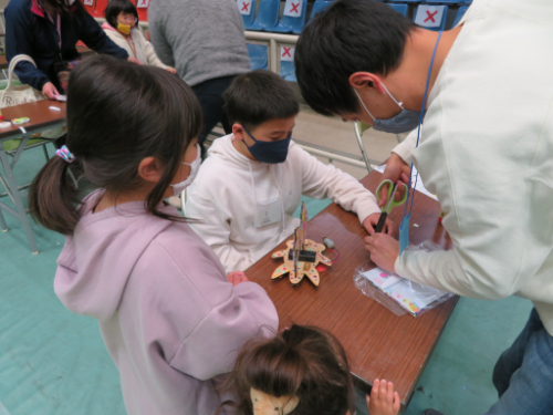 地域創生事業 「第2回おしごとフェスタin大和郡山」に出展しました。 奈良高専は、令和3年3月7日(日)に、大和郡山市立体育館(三の丸会館)で開催された「第2回おしごとフェスタin大和郡山」(主催:昭和工業団地協議会)に出展しました。この催しは、昭和工業団地の企業16社様を中心として開催されたものです。出展者が普段取り組んでいる仕事を、子どもたちが体験することにより、新しい知識、発見、ひらめき、経験値を得るだけでなく、世の中にある様々な職業・企業を知り将来の夢や可能性を育てることにつなげることを目的としています。 本校は、機械工学科 須田 敦 准教授および谷口 幸典 准教授による「歯ブラシで動く金魚ロボットを作ろう!」と題した出展を行いました。 (機械工学科 須田 敦 准教授) (機械工学科 谷口 幸典 准教授) この出展では、本校で製作したキットを使って、参加者の皆さんに歯ブラシで動く金魚ロボットを作ってもらいました。予定していた定員となる40名のお子さんたちが参加し、ロボット製作を行いました。皆さん、折り紙などを使って思い思いのデザインにしていきました。 完成したお子さんからスイッチを入れ、動作確認を行いました。この金魚ロボットは底面に取り付ける歯ブラシの位置によって様々な動きをします。皆さん、動きを変えるために歯ブラシの場所を色々と試行錯誤していました。 皆さんが作った個性豊かな金魚ロボットはお土産として持って帰ってもらいました。家に持って帰ってもらってからもデザインを変更したり、また歯ブラシの位置を変えて別の動きを試してみたりするなど楽しんでもらえると幸いです。