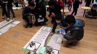 つぎに、作製したロボットで実際にコースを走らせて、試行しました。