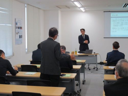 令和5年11月9日(木)、クリエイション・コア東大阪においてMOBIO(ものづくりビジネスセンター大阪)主催のMOBIO-Cafe『ここからはじまる産学連携「奈良高専」』が開催され、本校 電子制御工学科 玉木隆幸准教授が「フェムト秒レーザーを用いた表面微細加工と微細接合」と題して研究シーズの紹介をおこない15名の参加者が熱心に聴講いたしました。