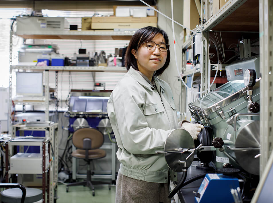 中学3年生の時にニュースで水素電池を知り、エネルギー問題が気になっていたこともあって、高専で燃料電池の研究を行うことを選びました。世界中で研究されていて、同時にSDGsにつながる社会的なテーマですから、視野が広がると考えたんです。それは「ドラえもん」の道具ほどは遠い未来ではないけれど、現在、社会実装されているわけではない、近い未来の目標のような感じがしています。