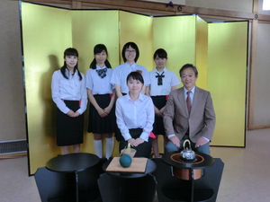 お知らせ 茶道部が第26回淡交会奈良支部学生合同茶会に参加 平成28年6月12日(日)に桜井市の大神神社大禮記念館で行われた「第26回淡交会奈良支部学生合同茶会」に、 本校茶道部(学生6名(うち留学生1名))が点前・半東として参加しました。 このお茶会では、 毎年奈良県の幼稚園から大学までの茶道部員が集まり、茶道を通して交流します。 なお、 当日は本校茶道部指導者の杉本宗行先生にご指導いただきました。