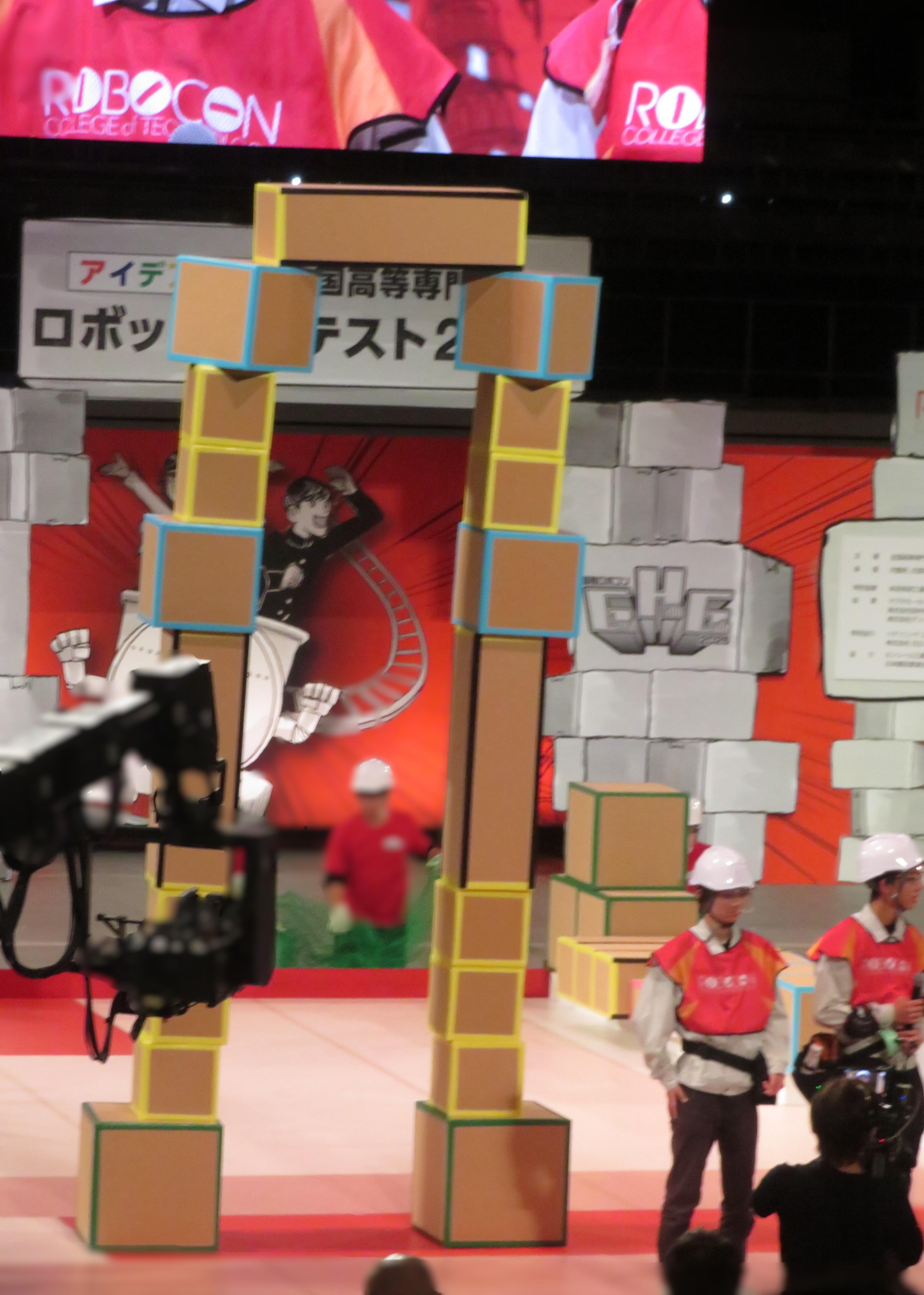 一寸の狂いもなくボックスを積み上げる精密さ,そして自動制御による速度を追い求めたマシンを作り上げた技術には会場全体が驚かされ,大会終了後のピットでも他高専学生や関係者から注目を集めていました。